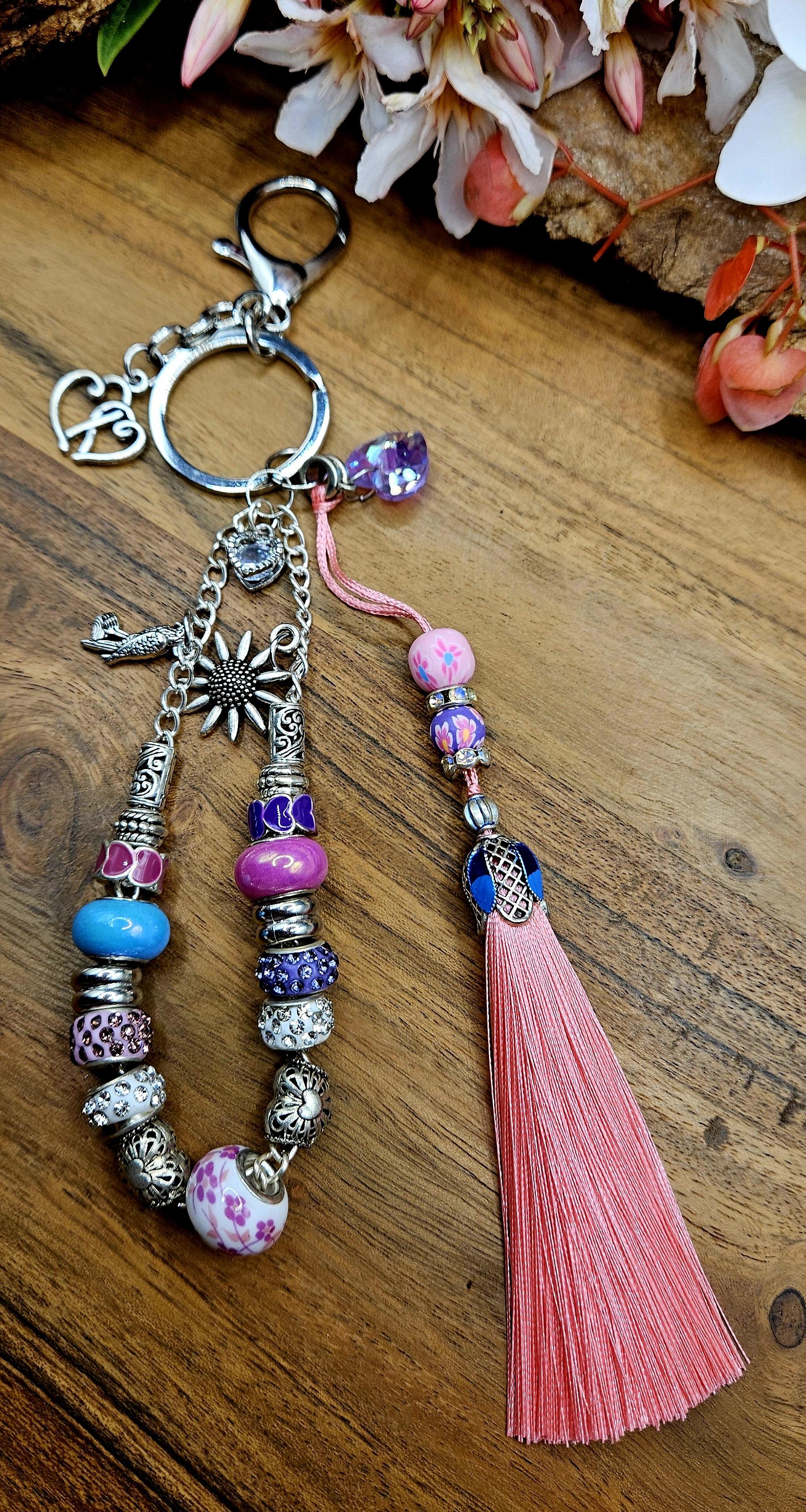 Handmade bag bling featuring carefully selected beads designed to brighten up your handbag or add a pop of personality to your keyrings. Each piece is unique, joyful, and made to make you smile