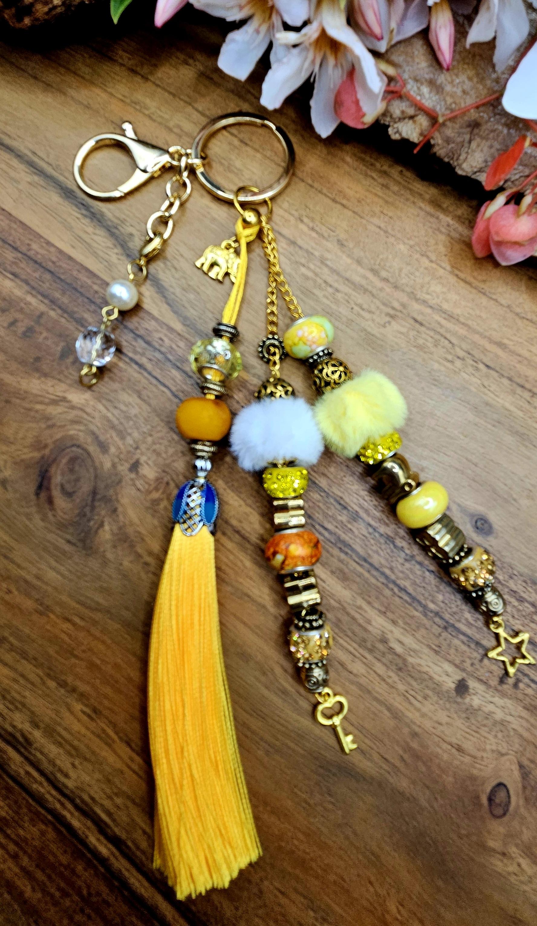 Handmade bag bling featuring carefully selected beads designed to brighten up your handbag or add a pop of personality to your keyrings. Each piece is unique, joyful, and made to make you smile