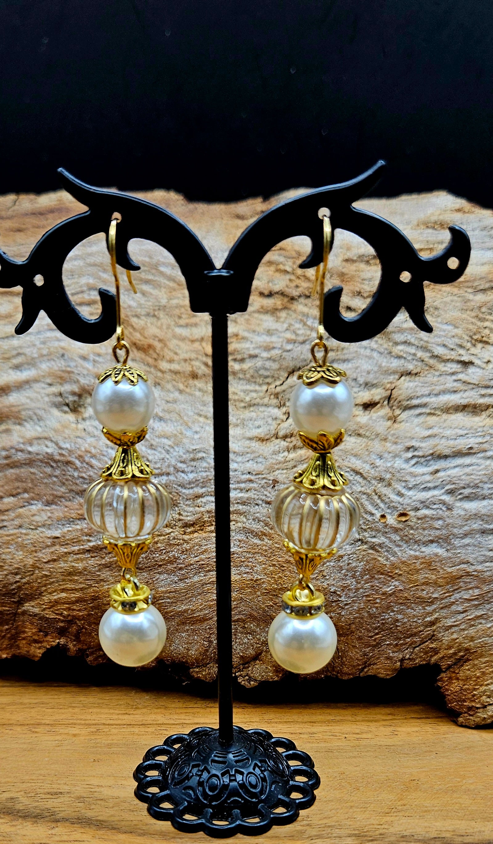 Delicately handcrafted, these unique earrings blend the natural sparkle of crystals with the vibrant charm of glass beads. Featuring intricate millefiori accents and one-of-a-kind handblown glass elements, each pair tells a story of artistry and colour. Light-catching and full of character, they’re perfect for adding a touch of magic and individuality to any outfit.